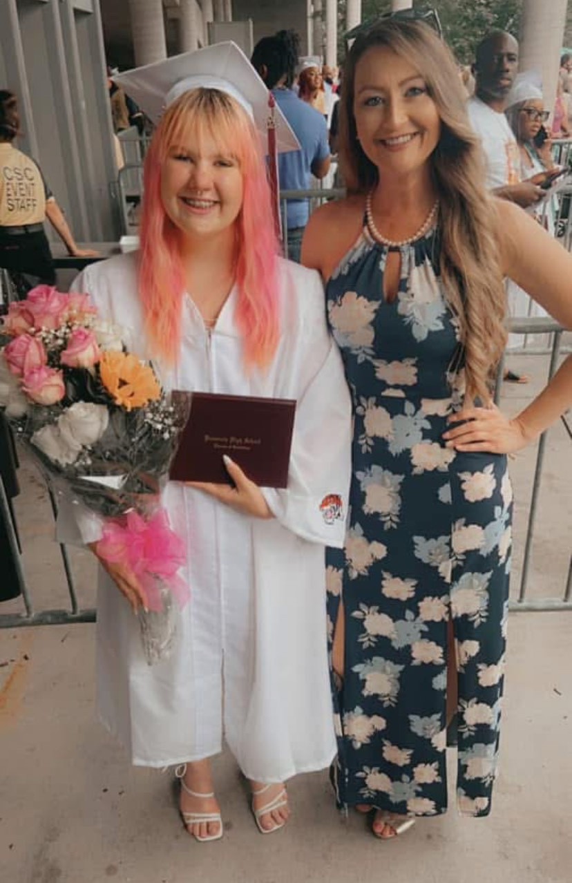 “Growing up with someone who struggles with addiction, you end up parenting them more than they parent you,” she shares. “That was the hardest part. Now, it’s amazing to just be my age — to be in school and building a life I never thought I could have.”